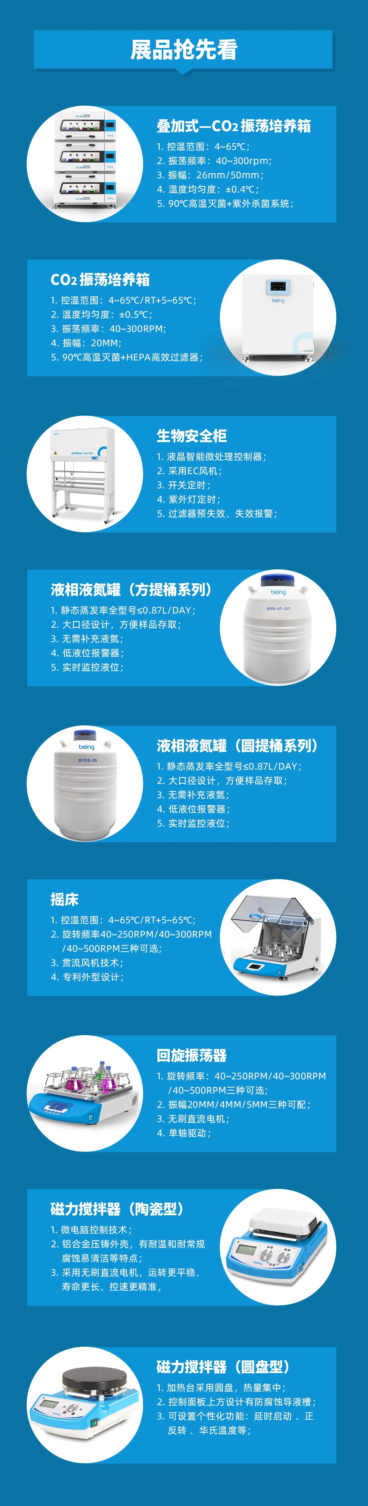 我們誠摯邀請(qǐng)您參加此次展會(huì)并歡迎蒞臨我們展位:5號(hào)館B11。屆時(shí),我們將現(xiàn)場展示低溫振蕩二氧化碳培養(yǎng)箱、生物安全柜、疊加式振蕩器、液相液氮罐、搖床、磁力攪拌器等產(chǎn)品,期待與您現(xiàn)場交流。
