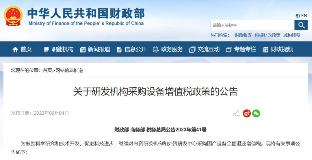 三部門公告,采購國產(chǎn)設(shè)備全額退還增值稅!