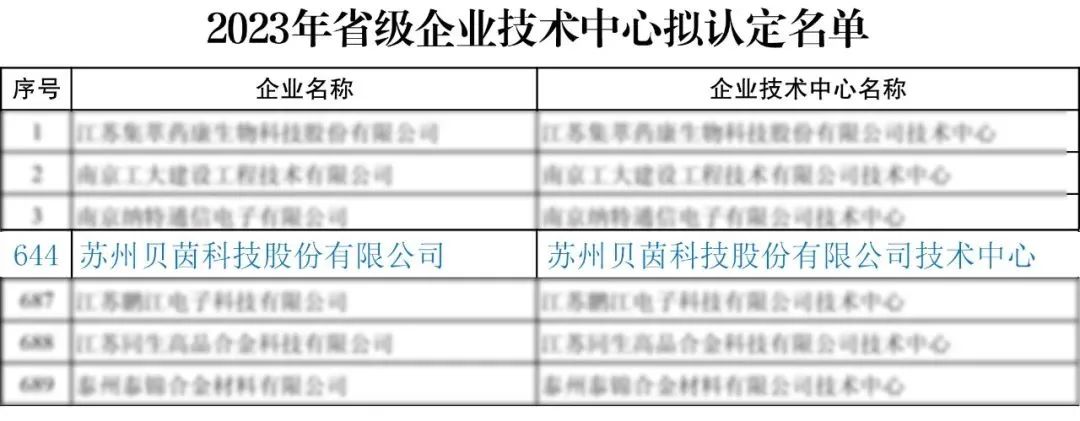 近日,江蘇省2023年省級企業(yè)技術(shù)中心擬認(rèn)定名單現(xiàn)已公示結(jié)束,蘇州貝茵科技股份有限公司成功入選。