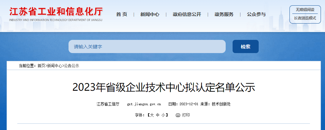 江蘇省2023年省級企業(yè)技術(shù)中心